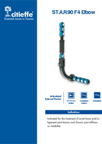 O fixador externo articulado de cotovelo ELBOW, é indicado para fraturas instáveis dos ossos do cotovelo; lesões ligamentares, luxação estável; após aplicação de síntese em fraturas cominutas ou osteoporóticas; prevenção de rigidez articular.