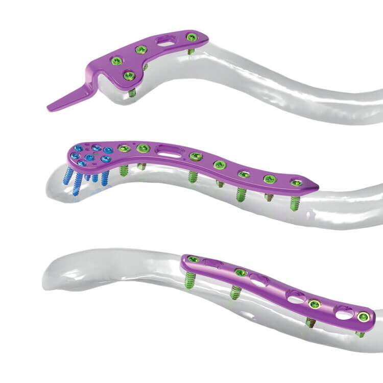 O mais completo sistema de Placas de Clavícula disponível no mercado. A Placa de Fixação Rigida para Clavícula tem a finalidade de auxiliar o cirurgião nos procedimentos cirúrgicos para fixação rígida, em osteossíntese de fraturas na clavícula. São produzidas em liga de titânio ASTM F 136. As placas possibilitam a compressão dinâmica, vascularização e fixação biológica com o travamento rígido do parafuso de bloqueio nos orifícios rosqueados da placa.